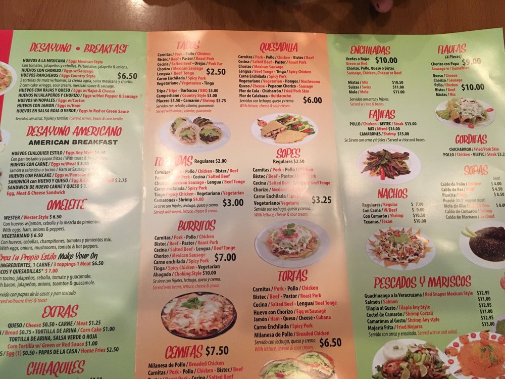 Tacos Y Quesadillas Mexico Restaurant Menu